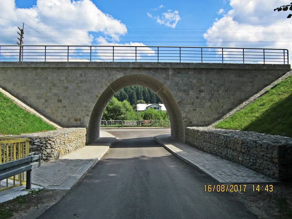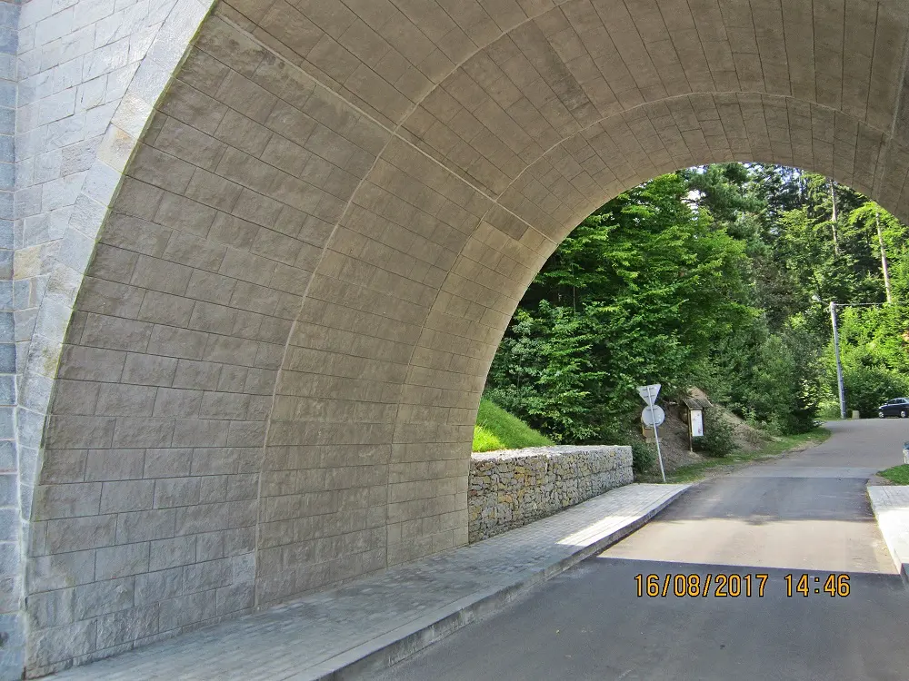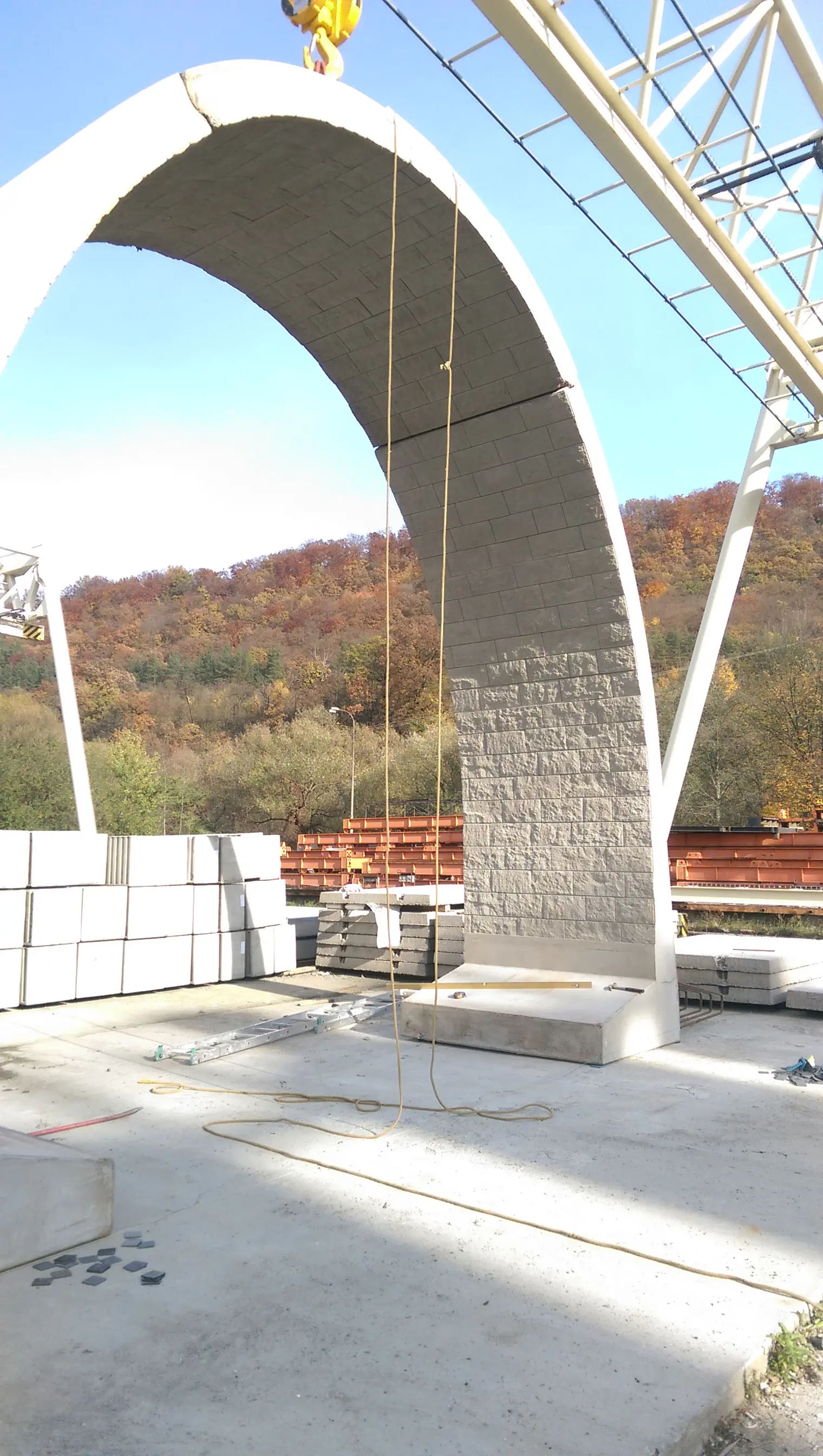 Wiadukt kolejowy został wykonany z prefabrykatów systemowych ABM ARCH. Obiekt był pod ochroną konserwatora zabytków, a lokalne władze wymagały, aby nowobudowany obiekt odwzorowywał pierwotną, 150-letnię konstrukcję. W tym celu powierzchnia prefabrykatu została poddana boniowaniu aby imitować bloczki kamienne. W środku wiaduktu znajduje się ozdobna faktura betonu, która współgra z kamiennym wykończeniem ścian czołowych obiektu.