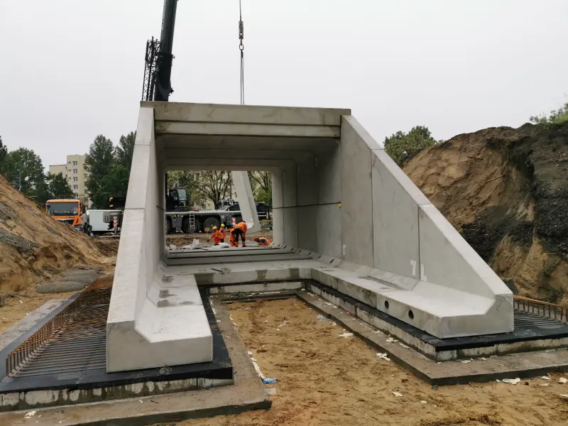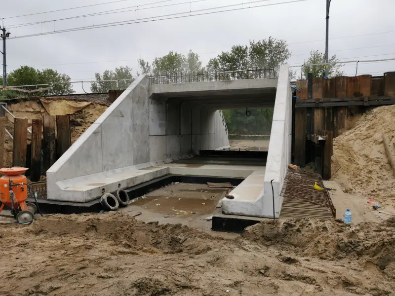 Dwa przejścia pod torami w km 0,615 i 7,775. Każdy z obiektów składał się z prefabrykowanych elementów systemu ABM FRAME. Montaż obiektów odbywał się połówkowo, przy zachowaniu ruchu kolejowego.
