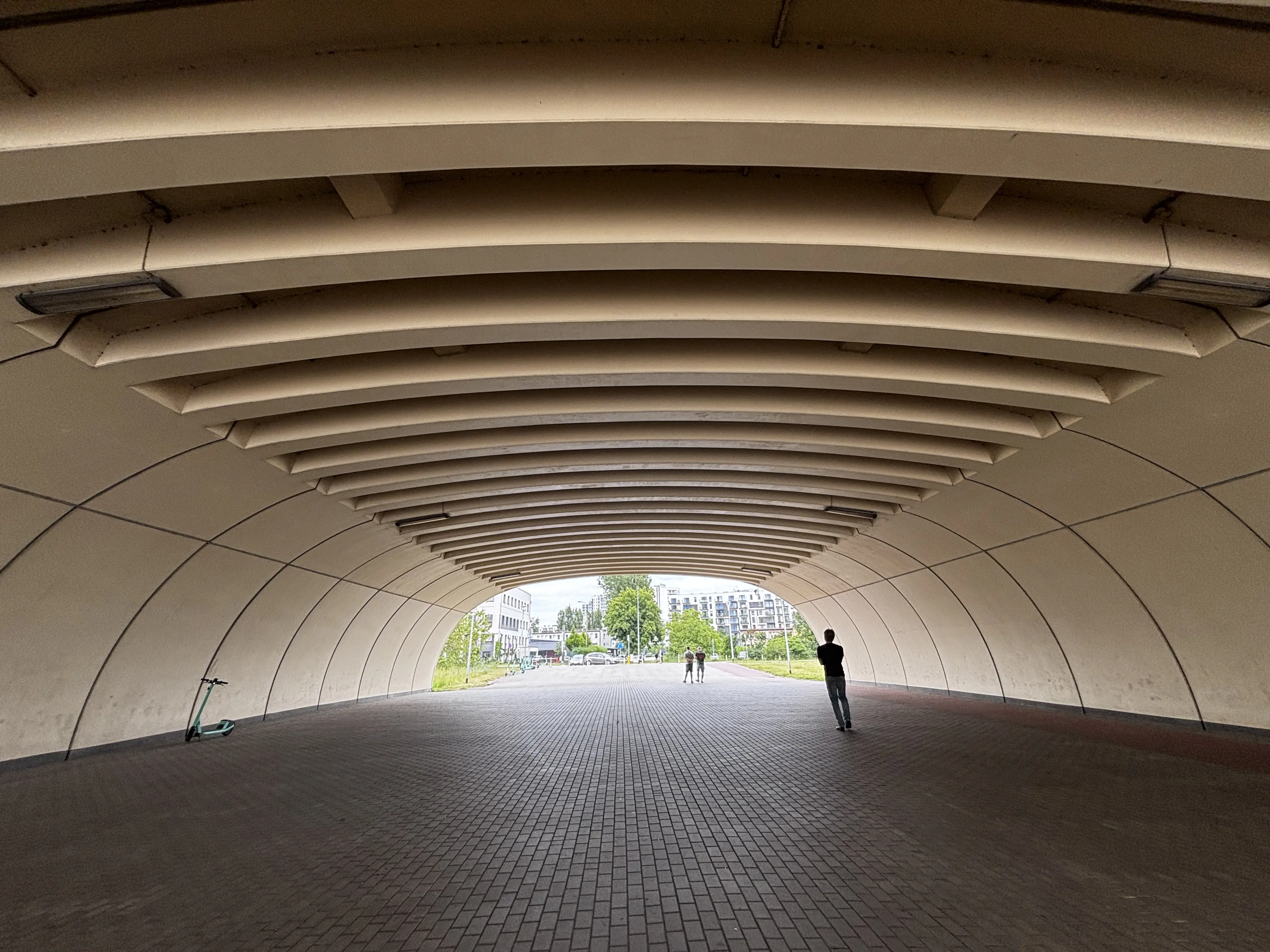 Tunel dla pieszych TP-2 składa się z prefabrykowanych sklepień oraz ścian bocznych systemu ABM ARCH. Skrajne elementy górne dostosowano do wykonania monolitycznego muru oporowego na budowie. Montaż obiektu TP-2 odbywał się na niewielkim placu budowy wokół wznoszonego obiektu podczas niekorzystnych warunków atmosferycznych, w tym temperatury dochodzącej do -25°C oraz dużych opadów śniegu.