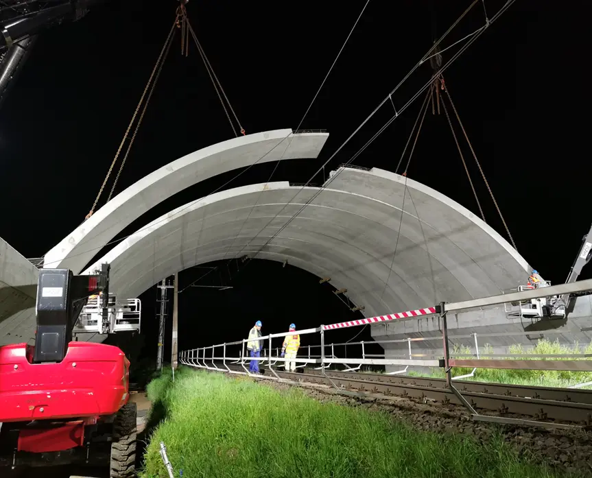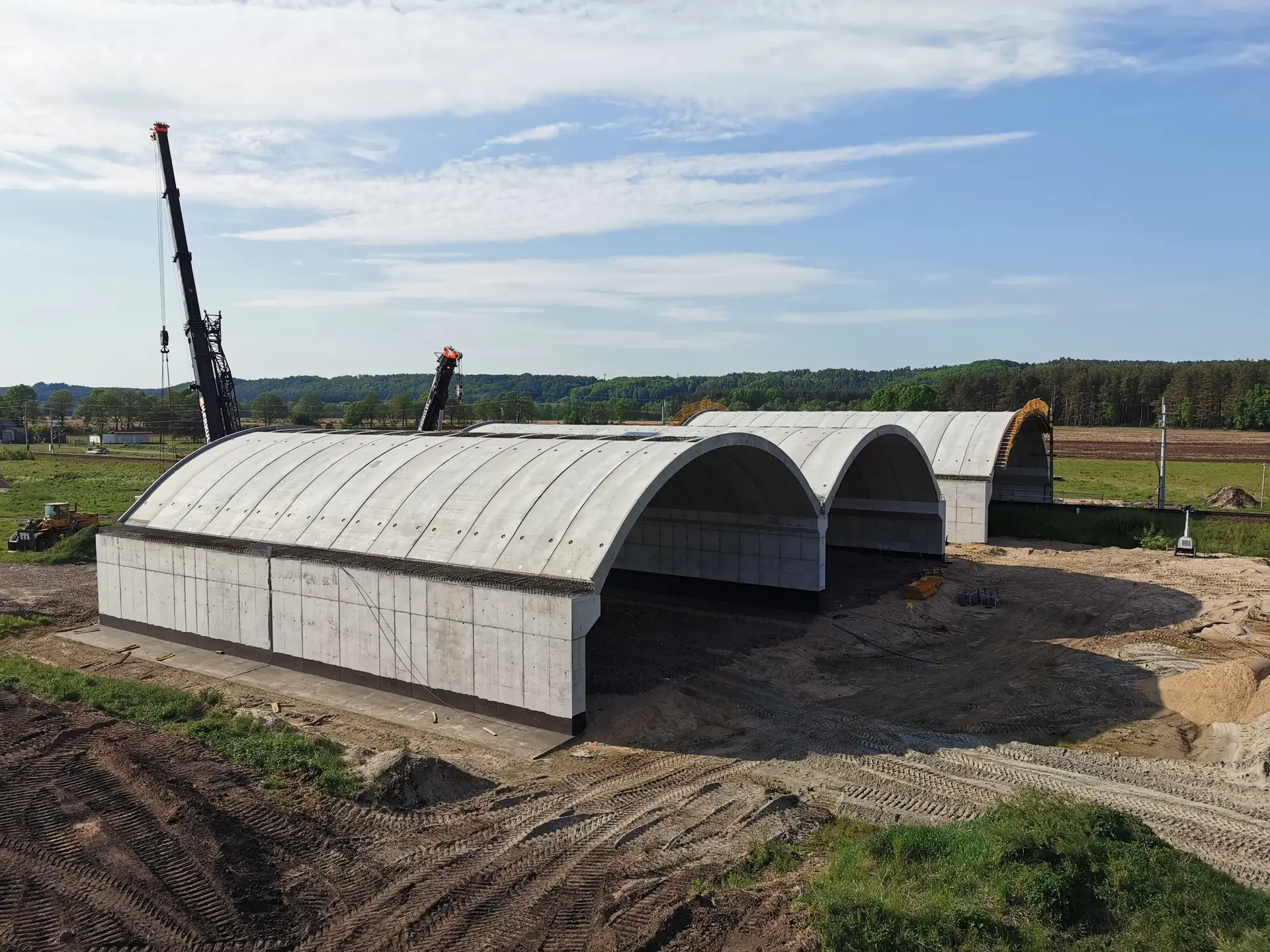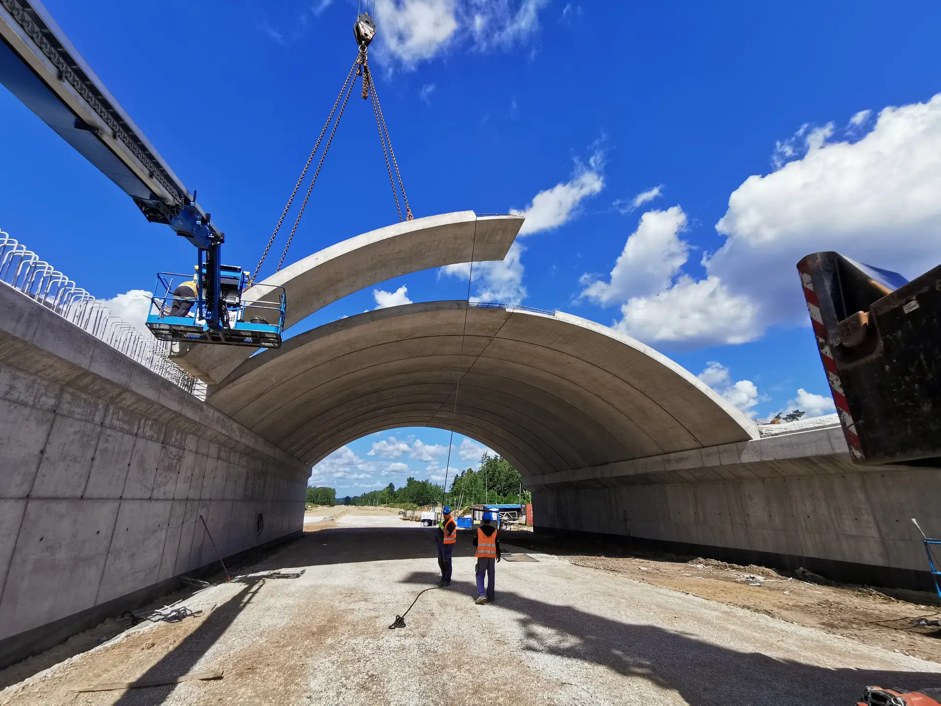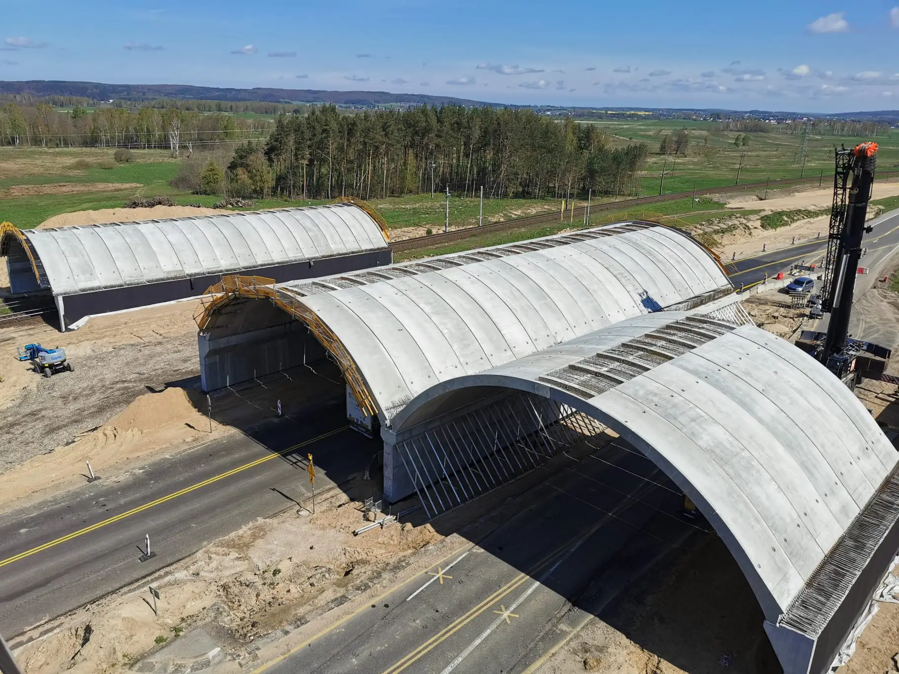 Cztery przejścia dla zwierząt o przekroju łukowym, z czego każde z nich składa się z dwóch konstrukcji: dwuprzęsłowej nad drogą ekspresową oraz jednoprzęsłowej nad linią kolejową. Obiekty wykonano z prefabrykowanych elementów górnych systemu ABM TWIN WING, opartych na podporach monolitycznych.