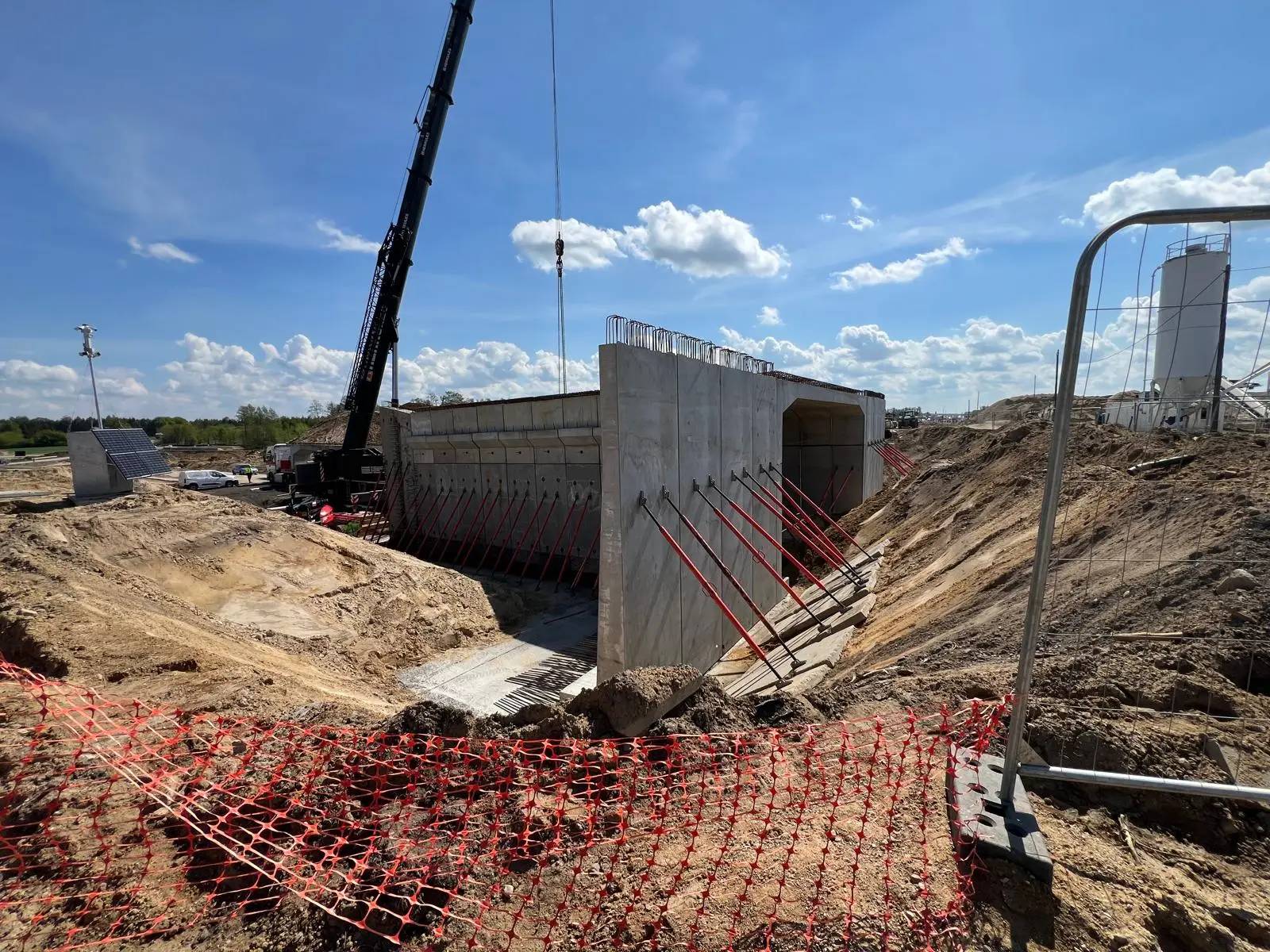 Dwa wiadukty drogowe WS-5 i WS-10. Każdy z obiektów składał się z prefabrykowanych elementów systemu ABM FRAME. Zastosowano prefabrykowane ściany oporowe o wysokości ponad 7m.